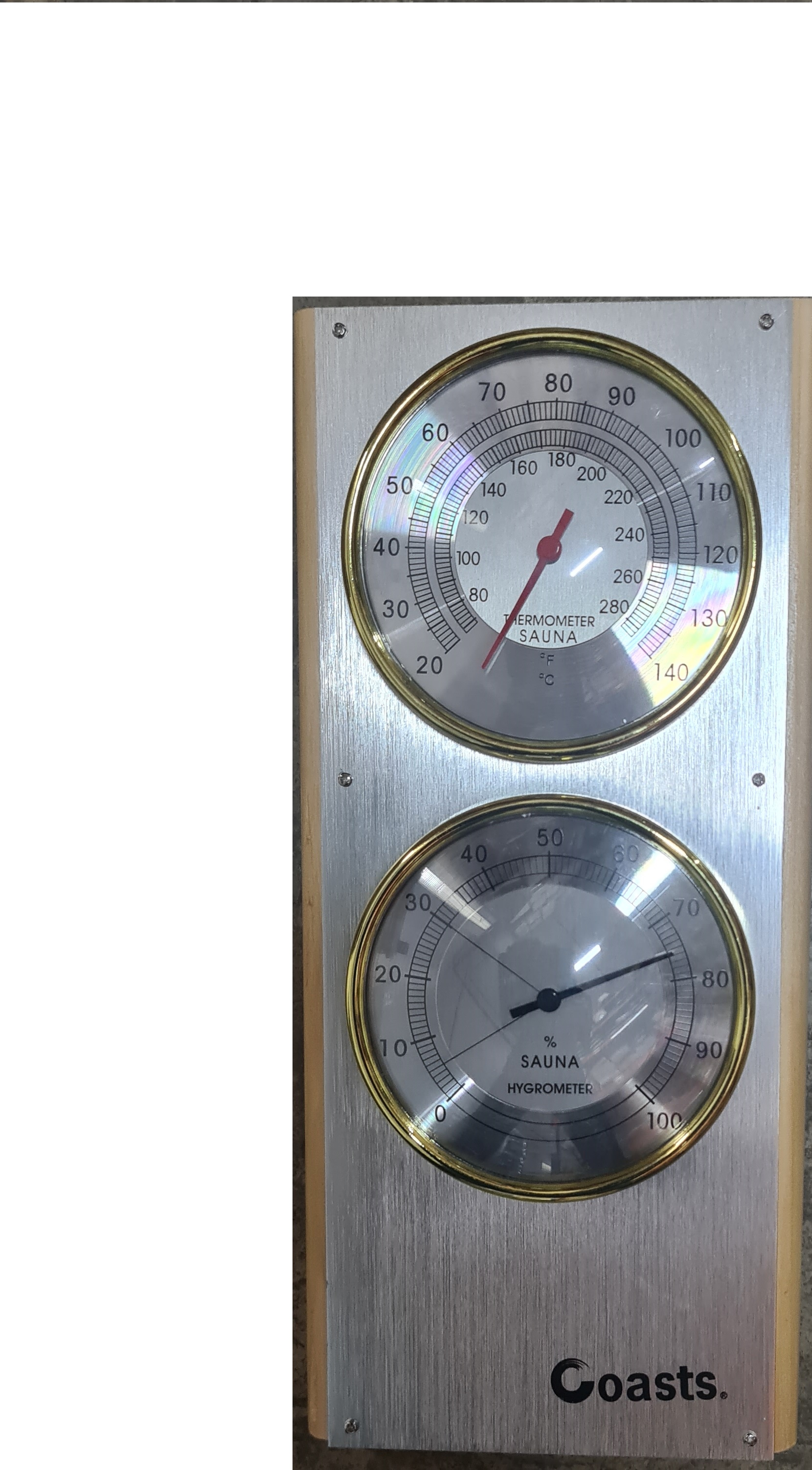 מד חום/לחות לסאונה יבשה מתוצרת COASTS דגם WJ-10 לוח עשוי עץ שני שעונים נפרדים- שעון חום 20-120 מעלות, שעון לחות 0-100%