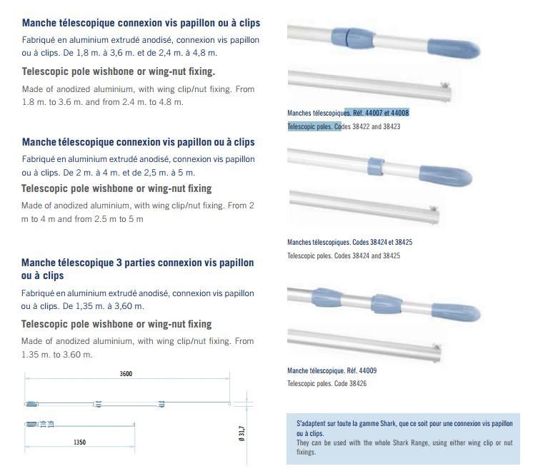 מוט טלסקופי 5 מ' מתוצרת STRAL POOL דגם 06665 המוט עשוי אלומיניום וניפתח מאורך 2.5 מ' לאורך 5 מ' ע"י מנגנון טלסקופי אורך המוט במצב סגור 2.5 מ'/ במצב פתוח 5 מ' חיבור קצה- קליפס משקל 1.4 ק"ג