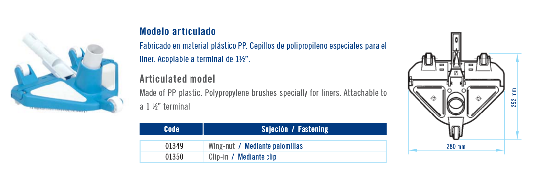 המטאטא האוניברסלי הינו בעל מפרק מיוחד המיועד לטפס על הקיר ומאפשר שאיבה קרובה מפינות הבריכה וליד קירות הבריכה