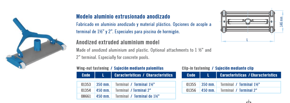 מטאטא אלומיניום לניקוי בריכות וליניקת ליכלוך מריצפת בריכות ציבוריות מתוצרת ASTRAL POOL דגם 01354-קליפס (01356-ברגים)