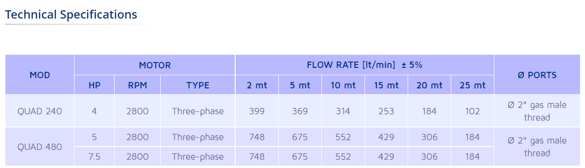 משאבות ליניקה עצמית עשויות נירוסטה עם מאיץ פתוח. כושר יניקה מעומק עד 5-6 מ' ספיקה מקסימלית 45 מק"ש עומד מקסימלי 25 מ'