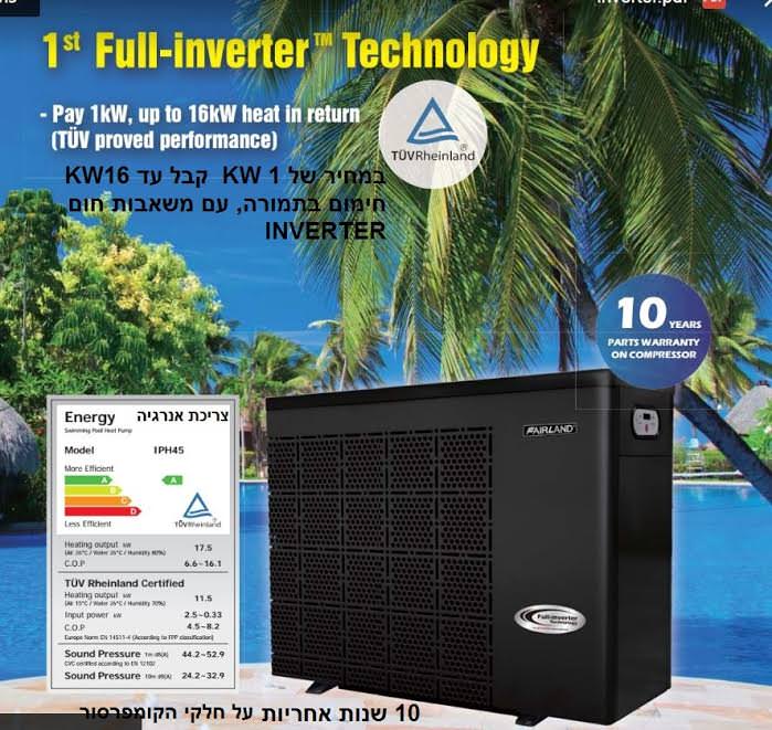 משאבת חום HEAT PUMP INVERTER לחימום בריכות שחיה ועיסוי תוצרת חב' FAIRLAND