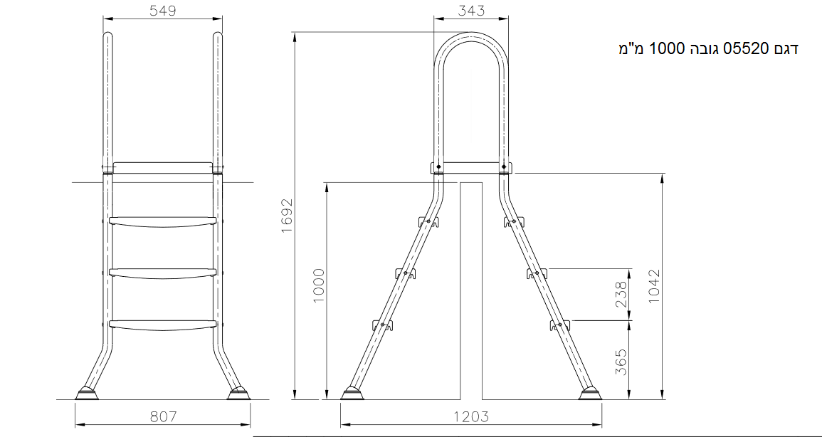סולם נירוסטה כפול לבריכות עיליות מתוצרת ASTRAL POOL דגם 05520/21/22סולם :עשוי נירוסטה 304/שלבים +מדרך עליון :פוליפרופילן /פיברגלסהתקנה פשוטה לבריכות עליות בגבהים של 1-1.2-1.5 מ' כולל גומיות המורכבות בתחתית הסולם