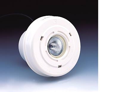 פנס תת מימי לבריכת בטון מיני מתוצרת ASTRAL POOL דגם 17885/33710 מיועד להתקנה בתוך נישה היצוקה בקיר הבריכה עשוי ABS לבן נורת דקרויקה/ 50W/12V כבל חשמלי באורך 4 מ' /משקל 1.5 ק"ג קוטר חיצוני של טבעת פנס 163 מ"מ